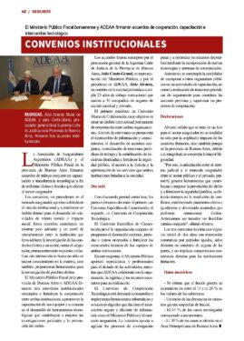 Los convenios, sin precedentes en el mercado asegurador, apuntan a fortalecer el vínculo institucional y a establecer un ámbito formal para el desarrollo de actividades de interés común e impacto social. Estos acuerdos constituyen un enorme paso adelante y un carril de entendimiento entre la institución que lleva adelante la investigación de las conductas ilícitas y un sector, como el asegurador, permanentemente expuesto a ellas.